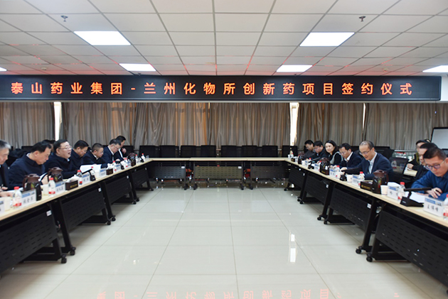 1月23日,中国科学院兰州化学物理研究所与山东泰山药业集团有限公司(以下简称泰山药业)创新项目合作协议签约仪式在兰州举行。泰安市委书记杨洪涛,兰州化物所党委副书记、所长周峰出席会议。兰州化物所天然药物与化学测量研究中心主任、相关部门负责人,泰安市政企代表参加活动。