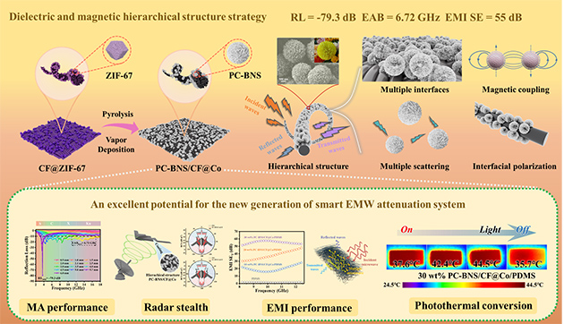 图2. PC-BNS/CF@Co多功能复合材料制备与性能评价。