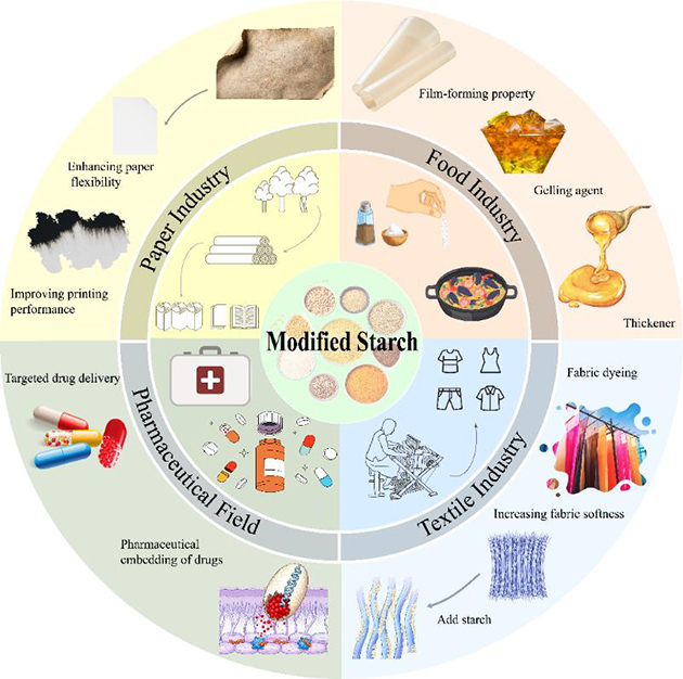 图3.淀粉改性材料作为工业领域关键原材料的应用