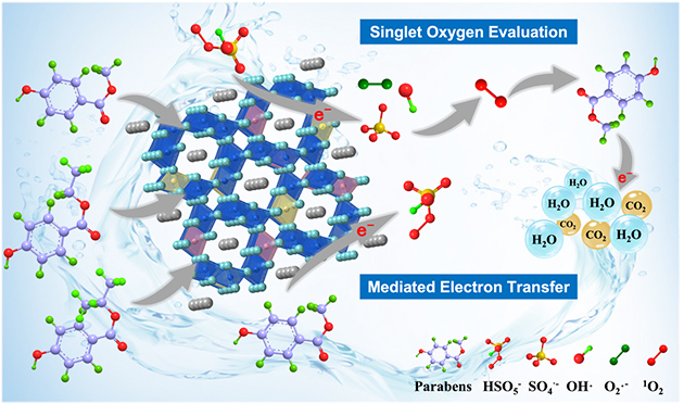 过硫酸盐高级氧化技术是深度处理水中微量、持久性有机污染物的方法之一,具有操作简单、过程快速等特点。该技术采用过硫酸盐为氧化剂,通过产生SO4·-、·OH、O2·-和1O2等活性氧物种实现对污染物的氧化降解。其中,非自由基的1O2具有氧化能力温和、半衰期长,对富电子有机污染物表现出反应选择性,以及更强的抵抗无机离子和有机背景干扰的能力。因此,1O2主导的非自由基降解路径为水中有机污染物的选择性去除提供了新的可能。同时,精准调控1O2主导的非自由基氧化降解逐渐成为研究热点。