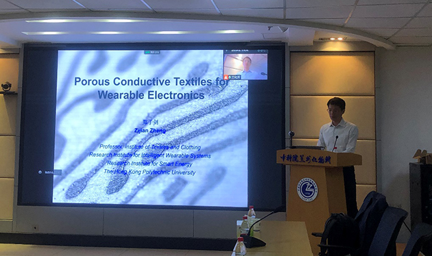 4月19日,香港理工大学郑子剑教授应邀到中国科学院兰州化学物理研究所进行学术交流,并作了题为“Porous Conductive Textiles for Wearable Electronics”的学术报告。相关领域科研人员100余人参加了线上和线下报告会。