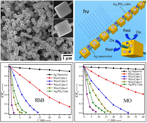 Ag纳米线/Ag3PO4立方体异质光催化材料的SEM,光生载流子分离机理及光催化性能。