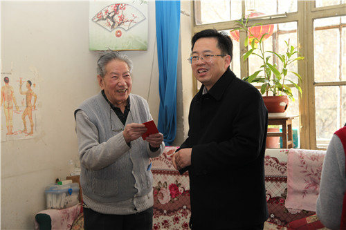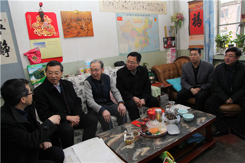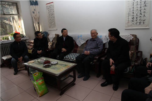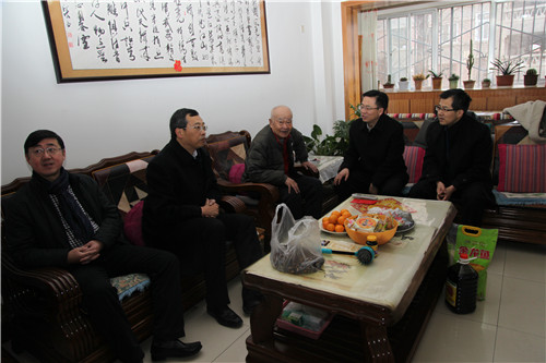 金马奔腾辞岁去,福羊踏雪迎春来。在2015年新春佳节即将来临之际,兰州化物所开展了走访慰问院士和离退休老同志活动。2月15日,中国科学院兰州化学物理研究所所长夏春谷、党委书记、副所长王齐华,副所长师彦平与所长助理张长春、赵培庆在党委办公室和人事处负责人的陪同下,看望并慰问了院士和部分在兰离退休老党员、老干部,向他们致以诚挚的问候和新春的祝福,并送去了慰问金和慰问品。