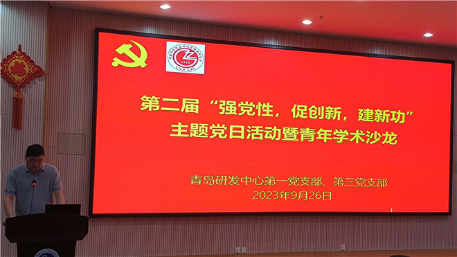 9月26日上午,中国科学院兰州化学物理研究所青岛中心第一党支部和第三党支部在青岛中心综合办公楼一楼学术报告厅开展了第二届“强党性,促创新,建新功”主题党日活动暨青年学术沙龙,活动由张松伟和于源共同主持。