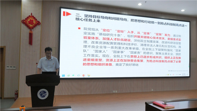 青岛中心党总支书记包红军为大家作了题为“加强党对科技事业的全面领导,为抢占科技制高点提供坚强政治保证”的党课,组织大家学习了中国科学院2023年夏季党组扩大会议精神,分享了学习心得和体会。