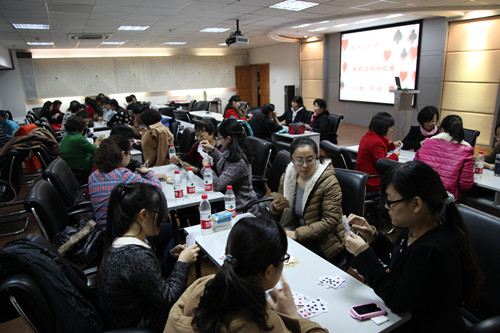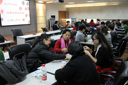 本次比赛采取团队淘汰赛制,以各妇女小组为单位组成3组共6人的代表队参赛。比赛现场,各代表队选手们一丝不苟地揭牌看牌,认真地观察着局中搭档和对家形势,精确谨慎计算,果断冷静地亮牌甩牌。随着比赛的逐局进行,各组选手的配合逐渐熟练默契,场上一次次精彩扣抵的力挽狂澜、一波又一波潮水般的封杀,不时引起队员的赞赏声。随着两轮比赛的紧张搏杀,局面逐渐清晰。正所谓“高手在身边”,来自OSSO国家重点实验室和精细石油化工中间体国家工程中心妇女小组代表队与办公室、党办、人事处、研究生处妇女小组代表队携手闯入决赛。经过一番激烈角逐,最后办公室、党办、人事处、研究生处妇女小组代表队技胜一筹,以3:0战局获得了比赛的冠军。