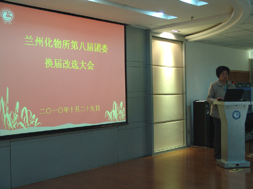 会上,赵秀茹书记作了讲话。她充分肯定了所团委在过去几年里在服务青年,为团员青年成长成才搭建平台和推动研究所发展等方面所做出的积极贡献。她说,2004年以来,所团委连续四年获得甘肃省“五四红旗团委”称号和其他多项荣誉称号,这也是兰化所历史上团委获奖项最高最多的纪念,是党委支持,团委和团员共同努力的成果。在促进知识创新的进程中,所团委积极组织青年学术论坛、人文知识讲座、结合所庆五十周年开展了郭曰方《共和国科学家颂》诗歌朗诵会等丰富多彩的文化活动,并积极带领广大团员青年投身社会公益活动和抗震救灾捐款活动中去,真正发挥了团委桥梁纽带和党的助手作用。她希望新一届团委以召开本次换届改选大会为新的起点,面对新的发展机遇,继承和发扬往届团委的优良传统,加强自身建设,主动融入研究所党建工作中来,团结带领广大团员青年围绕研究所跨越发展,围绕创先争优活动,围绕“创新2020”,积极探索新形势下做好共青团工作的新途径、新方法,为研究所的发展作出新贡献。她对全所团员青年要坚定共产主义理想信念,树立科技报国的志向;要刻苦学习本专业知识,增长为人民服务的才干;要保持艰苦奋斗的本色,立足西部,无私奉献;要积极参加文化体育活动,陶冶情操,加强修养;要围绕创新型国家和创新型研究所建设开拓进取,锐意创新。