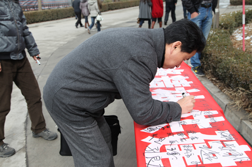 金城三月,春寒料峭,落在地上的雪花还未完全消融,寒冷的空气迎面扑来,阵阵袭人,但这丝毫没有影响广大职工和研究生同学参与签名活动的热情,他们纷纷来到所团委和研究生会早已准备好的签名台前,在鲜红的横幅上郑重写下了自己的名字,以此表达对雷锋精神的敬仰和对弘扬雷锋精神的信心。