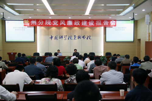 5月27日,应中科院兰州分院邀请,中科院监查审计局副局长郭建军在兰州分院做了题为《加强反腐倡廉建设,预防职务犯罪》的报告。兰州化物所党委书记兼副所长赵秀茹、纪委书记、副所长夏春谷以及相关科研管理人员参加了此次报告会。