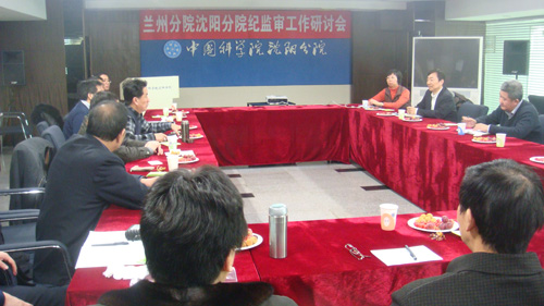 为贯彻落实中科院2012年度纪监审工作会议(沈阳)精神,推进廉洁从业风险防控工作,近日,中国科学院兰州分院纪检组组织分院系统单位党委、纪委负责人、纪监审干部赴沈阳分院进行学习调研。