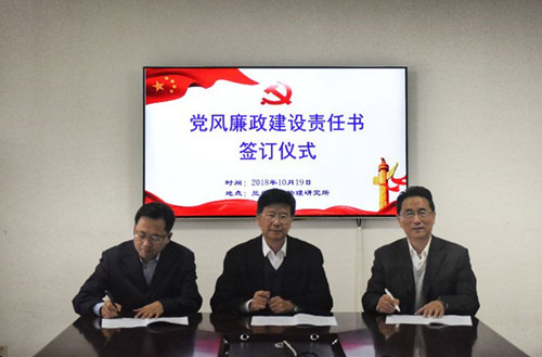 10月19日,中国科学院兰州分院在中国科学院兰州化学物理研究所举行党风廉政建设责任书签订仪式,兰州分院院长王涛、分党组书记谢铭,分别与兰州化物所所长、党委书记王齐华签订了党风廉政建设责任书。
