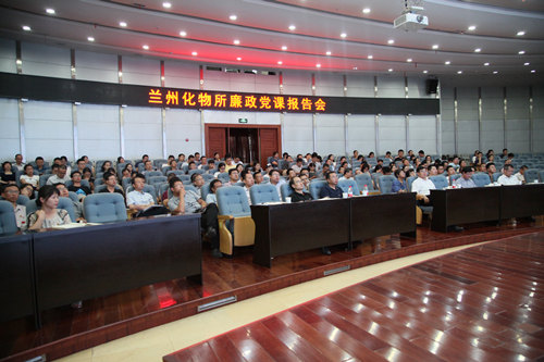 为进一步贯彻落实在“不忘初心、牢记使命”主题教育活动中清正廉洁作表率的精神与要求,8月19日,中国科学院兰州化学物理研究所举办了2019年廉政党课报告会。全体在职职工和研究生党员、离退休党支部书记,实验室(中心)正副主任、课题组长、管理部门正副处长等200余人参加了会议。会议由党委副书记、纪委书记张长春主持。