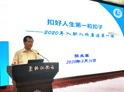 党委副书记、纪委书记张长春作了题为“扣好科研人生第一粒扣子——2020年入职入所廉洁第一课”的专题报告。报告传达了习近平总书记和党中央关于全面从严治党、党风廉政建设、科研诚信建设的有关精神和要求,通报了中央纪委国家监委驻中科院纪检监察组有关院内单位违纪违规典型案例和国家自然科学基金委公布的科研诚信典型案例。重点从如何立足本职做好科研、加强科研诚信建设、增强规矩意识和廉洁从业意识、强化安全保密工作等提出了落实要求。