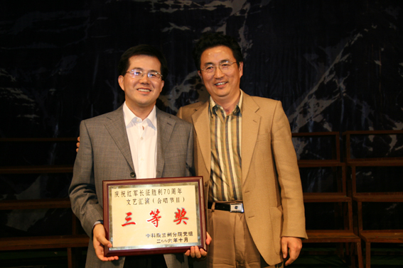 在10月13日由兰州分院举办的纪念红军长征胜利70周年文艺演出活动中,我所在举办纪念活动基础上推荐的百人大合唱《亲爱的党我对你说》、《四渡赤水,出奇兵》和舞蹈《康定》分别获得合唱节目类三等奖和舞蹈节目类优胜奖。我所共有120余名职工、研究生和离退休人员参加了本次文艺演出。