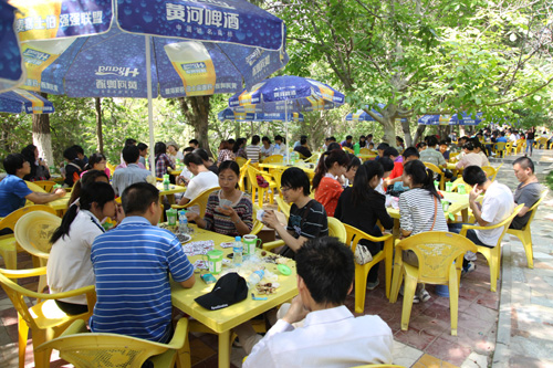 经过1个多小时的行程,参加活动的职工和研究生全部到达徐家山森林公园。初夏的徐家山,枝叶繁茂,满眼绿色,一派生机勃勃的景象。山中树间,凉爽怡人,大家走在公园的小路上,观赏着如诗如画的森林画卷,倘佯在鸟语花香、绿树青山之间,充分感受着大自然给每个人带来的快乐和舒心。到达沁苑山庄后,在各分会主席的组织下,大家又开展了一系列丰富多彩的休闲娱乐活动。或饮一杯茗茶,在亭台楼阁之间品尝韵味;或打一场牌局,在瞬息万变之中体会竞技的快乐;或邀几个好友,在谈天说地之中放松科研和工作的压力。整个山庄处处欢声笑语,人人洋溢着快乐的笑脸。下午5时,职工和研究生们开始有组织的下山返程,登山游园活动圆满结束。