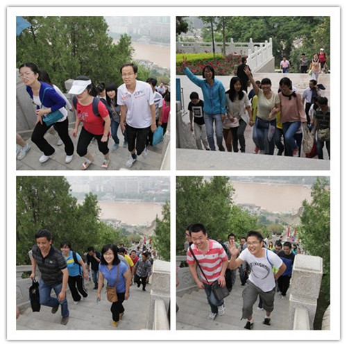 6月15日,天空一片晴朗,太阳初露笑脸,为登山比赛提供了适宜的环境。上午8时左右,近400名职工、研究生聚集在白塔山下,开始登山比赛的热身准备。8点30分,随着一声令下,登山队伍整装出发,大家在欢声笑语中你追我赶,迅速向山上挺进,沿途中,经过飞檐斗拱的建筑群,穿过红柱环绕的亭榭回廊,迈进树高林密的山间小路……一边感受着曲径通幽、山势层叠起伏的自然美景;一边尽享着呼吸新鲜空气、锻炼身体的登山乐趣。