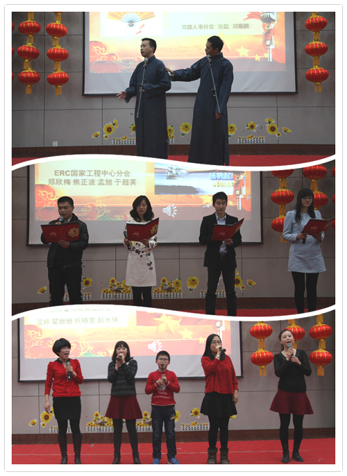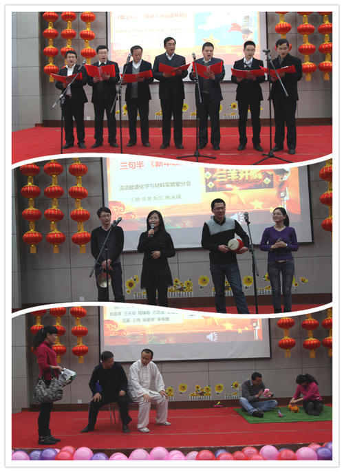 由院西北特色植物资源化学重点实验室邸多隆主任领衔的男声合唱《科研人永远是年轻》、《垄上行》拉开了联欢表演的序幕,展现了科研人踏实稳健的性格,更抒发了他们松树一般冬夏常青的创新情怀,引起全场观众的共鸣。接着,由唐子卿、周映彤两位小朋友表演的二胡、琵琶合奏《金蛇狂舞》,曲调热情昂扬,让大家感受到了浓郁的节日气氛。一曲信天游《妹妹你别走》,用开阔奔放的演唱表达了对心上人炽烈的情感。萨克斯独奏《北国之春》,悠扬的旋律拨动了大家浓浓的思乡情弦。哑剧《文明从小事做起》幽默生动的表演,再现了生活中的一些不文明现象,讲述了文明要从身边小事做起的道理。歌曲《再回首》表达了对往昔生活的怀念和对未来人生的美好期盼。相声《满腹经纶》充满传统相声的韵味,从头到尾包袱不断,引得全场爆笑阵阵,将联欢推向了高潮。三句半《新年诵》为全所职工送上了新春的美好祝愿。诗朗诵《携手创新、共铸辉煌》表达了科研人员创新为民、科技报国的豪情。联欢会节目形式丰富,现场气氛热烈,抒发了大家对兰州化物所美好未来的真挚祝福。
