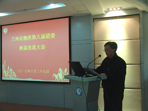 会上,赵秀茹书记作了讲话。她充分肯定了所团委在过去几年里在服务青年,为团员青年成长成才搭建平台和推动研究所发展等方面所做出的积极贡献。她说,2004年以来,所团委连续四年获得甘肃省“五四红旗团委”称号和其他多项荣誉称号,这也是兰化所历史上团委获奖项最高最多的纪念,是党委支持,团委和团员共同努力的成果。在促进知识创新的进程中,所团委积极组织青年学术论坛、人文知识讲座、结合所庆五十周年开展了郭曰方《共和国科学家颂》诗歌朗诵会等丰富多彩的文化活动,并积极带领广大团员青年投身社会公益活动和抗震救灾捐款活动中去,真正发挥了团委桥梁纽带和党的助手作用。她希望新一届团委以召开本次换届改选大会为新的起点,面对新的发展机遇,继承和发扬往届团委的优良传统,加强自身建设,主动融入研究所党建工作中来,团结带领广大团员青年围绕研究所跨越发展,围绕创先争优活动,围绕“创新2020”,积极探索新形势下做好共青团工作的新途径、新方法,为研究所的发展作出新贡献。她对全所团员青年要坚定共产主义理想信念,树立科技报国的志向;要刻苦学习本专业知识,增长为人民服务的才干;要保持艰苦奋斗的本色,立足西部,无私奉献;要积极参加文化体育活动,陶冶情操,加强修养;要围绕创新型国家和创新型研究所建设开拓进取,锐意创新。