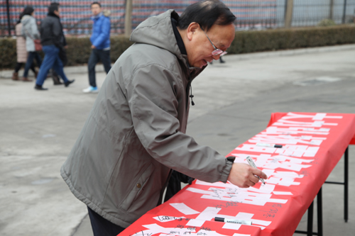 金城三月,春寒料峭,落在地上的雪花还未完全消融,寒冷的空气迎面扑来,阵阵袭人,但这丝毫没有影响广大职工和研究生同学参与签名活动的热情,他们纷纷来到所团委和研究生会早已准备好的签名台前,在鲜红的横幅上郑重写下了自己的名字,以此表达对雷锋精神的敬仰和对弘扬雷锋精神的信心。