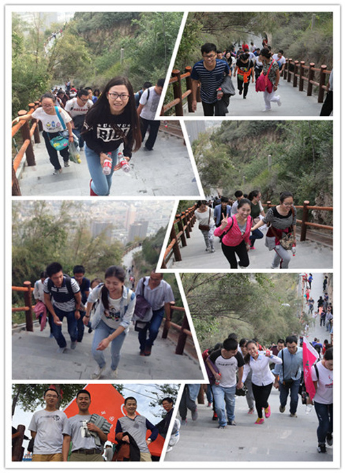本次登山比赛的起点设在五泉山公园正门口,终点为兰山公园二台阁。上午8点30分,参加活动的职工和研究生已集合完毕,并合影留念。随着一声令下,比赛正式开始,职工和研究生们个个兴致高昂,精神饱满地向终点进发。大家你追我赶,相互鼓劲,共同攀登。途中山路蜿蜒曲折、林木郁郁葱葱、空气沁人心脾,令人倍感清新舒爽。