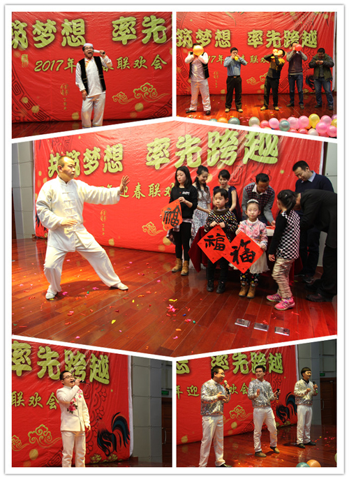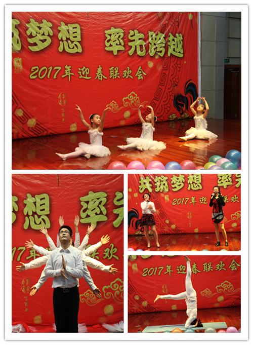 由小朋友们表演的舞蹈《小天鹅》拉开了联欢会的帷幕。独唱《小六莲令》,歌声高亢悠长、曲调起伏跌宕,展现出花儿这一西北地区特色民歌的魅力。对唱歌曲《北极雪》歌词温馨、旋律优美,诉说出款款深情。离退休老同志们精心准备的节目《小拜年》唱词诙谐幽默、形式丰富多彩,将联欢会推向高潮。爵士舞《jazz show》急促又富动感、热情而又奔放,单人瑜伽则充分展示了身体的平衡与柔美。三句半《夸夸兰州化物所》以精炼幽默的语句对研究所一年以来的各项工作与业绩进行了总结,赢得阵阵掌声。舞蹈《群魔乱舞之鸡年大吉》活泼俏皮,引得现场观众笑声不断。节目《国粹》将书法和太极两大传统艺术完美融合,表演嘉宾现场书写了五种字体的“福”字,寓意研究所全体职工在新的一年里五福临门。歌曲串烧《兰州化物所部门各放光彩》唱出了全所职工凝心聚力、攻坚克难的精神,表达出对研究所美好未来的真挚祝福。