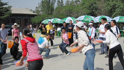 登山比赛结束后,所工会还组织大家在 “望河楼”休闲山庄开展了“猜谜语”、“夹乒乓球”、“看谁接的多”等游艺活动,由于项目趣味性强,大家参与热情高涨,各分会都派出了代表队参加了比赛,为取得比赛名次,参赛队员们密切配合,竭尽所能,努力做好每一环节的衔接,充分体现了团队协作精神。整个游艺现场充满了加油声和欢笑声。