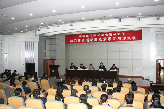 2月24日下午,兰州化物所召开学习实践科学发展观活动群众满意度测评大会。会议由党委委员、所长刘维民主持。党委书记、副所长赵秀茹作了学习实践活动群众满意度测评情况通报,王齐华副所长作了问题整改情况的通报。兰州分院党组书记、副院长王学定和分院学习实践活动领导小组办公室成员陈作涛出席了会议。所党政领导及班子成员、党支部书记和委员,实验室主任和管理部门负责人代表、研究生同学代表、离退休人员代表、民主党派代表共74人参加了测评。