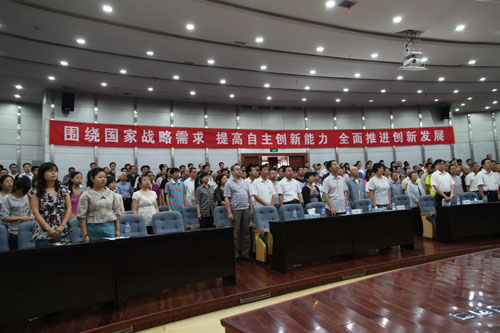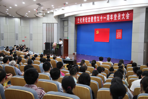 6月29日上午,兰州化物所党委在理化楼一楼学术厅召开全所党员大会,隆重纪念中国共产党建党91周年。兰州化物所党委书记、副所长赵秀茹在会上作了“深入推进创先争优活动,始终保持党的先进性”的党课报告。所党委委员、所长刘维民研究员主持了会议。所党委委员王齐华副所长、王爱勤研究员、邵士俊研究员和全所在职职工党员、研究生党员、部分离退休职工党员以及入党积极分子代表近300人参加了会议。