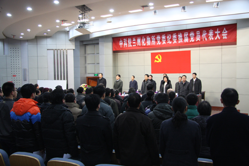大会在庄严的国歌声中拉开序幕。会上,谢铭宣读了分院党组《关于对兰州化物所党委、纪委换届请示的批复》、张兴仁宣读了《关于对兰州化物所党委、纪委委员候选人的批复》。大会听取并通过了第七届党委、纪委工作报告、《兰州化物所党费收缴、使用和管理情况的报告》、《兰州化物所第八届党委、纪委选举工作办法》,还通过了13名总监票人、监票人、计票人和唱票人名单。