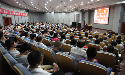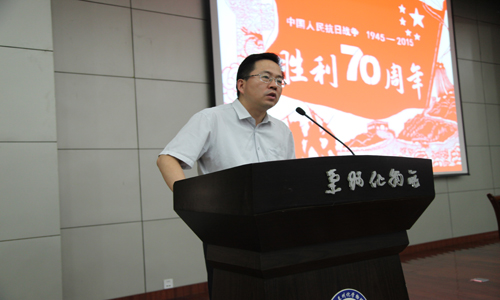 为隆重纪念中国人民抗日战争暨世界反法西斯战争胜利七十周年,缅怀先烈、铭记历史,8月28下午,中国科学院兰州化学物理研究所党委组织了专题报告和主题签名等系列活动。活动特邀人民日报社甘肃分社社长、兰州大学新闻与传播学院院长林治波为全所职工和研究生作了题为《中国人民抗日战争胜利七十周年》的专题报告。兰州化物所党委书记兼副所长王齐华,副所长师彦平,中科院院士刘维民研究员等出席了报告会。研究所实验室(中心)正副主任、管理部门正副处长及在职职工、研究生和部分离退休职工等300余人共同参加了报告会和签名活动。报告会由王齐华主持。