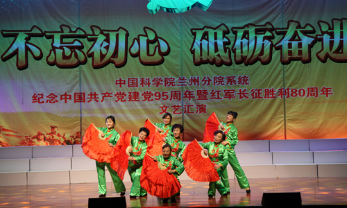 10月17日,中国科学院兰州分院系统纪念中国共产党建党95周年暨工农红军长征胜利80周年文艺汇演在兰州大学大学生活动中心举办。兰州化学物理研究所共选送在职职工、研究生和离退休职工三支合唱队参加了文艺汇演。在职职工表演的大合唱《在太行山上》获得合唱类节目优秀奖,离退休职工合唱队获得精神文明奖。