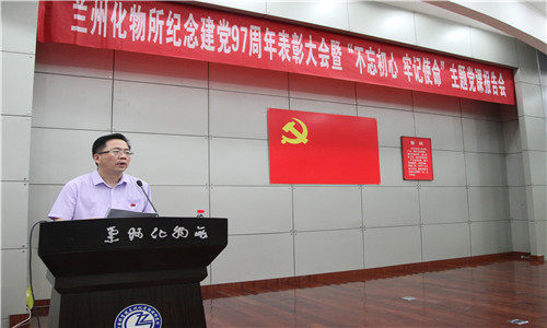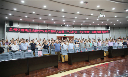 为纪念中国共产党成立97周年,深入学习贯彻习近平新时代中国特色社会主义思想和党的十九大精神,6月29日下午,中国科学院兰州化学物理研究所举办了纪念建党97周年党员大会暨 “不忘初心、牢记使命”主题党课报告会。所领导和全所在职职工党员、研究生党员、部分离退休党员以及民主党派代表等300多人参加了大会。会议由所党委委员、副所长张俊彦主持。
