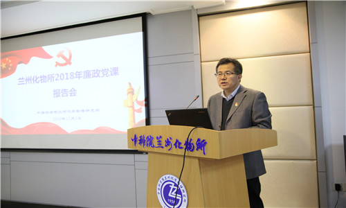 为进一步深入贯彻落实全面从严治党有关要求,11月5日下午,中国科学院兰州化学物理研究所举办了2018年廉政党课报告会。所领导、党委委员、纪委委员、各实验室(中心)正副主任、课题组正副组长、各管理与支撑部门正副处长及负责人、所属控股企业负责人、党务和纪监审工作人员,管理骨干参加了会议。会议由党委副书记、纪委书记张长春主持。