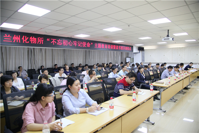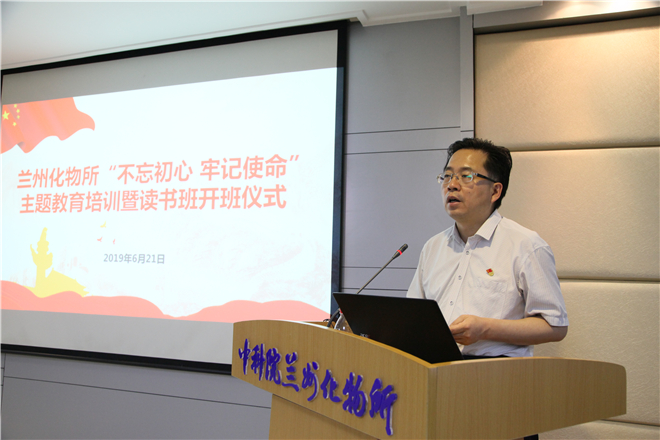 为进一步贯彻落实中科院党组和甘肃省委有关“不忘初心 牢记使命”主题教育工作部署,扎实推进研究所主题教育各项工作,6月21日下午,中国科学院兰州化学物理研究所举办“不忘初心 牢记使命”主题教育培训暨读书班开班仪式,并对研究所主题教育工作进行再动员再部署。会议由研究所所长、党委书记王齐华主持。所领导,两委委员,各党支部书记、委员,副处级及以上党员领导干部(包括六级及以上职员),实验室(中心)党员正副主任和全所各工青妇组织负责人70余人参加了会议。