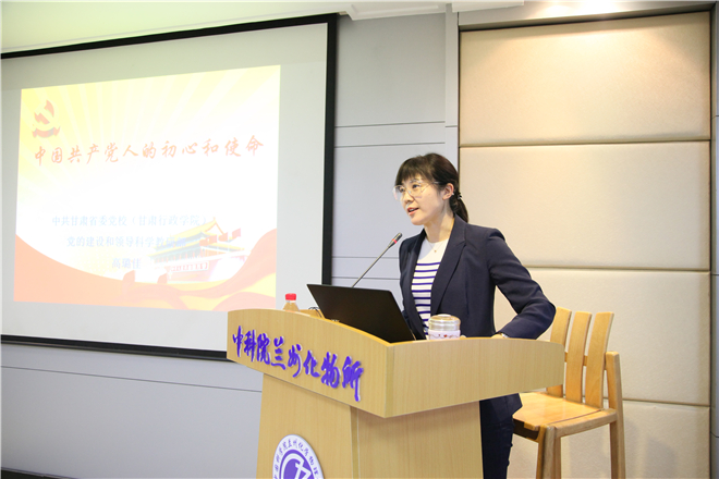 会议邀请中共甘肃省委党校(甘肃行政学院)党的建设和领导科学教研部副主任高璐佳副教授作了题为“中国共产党人的初心和使命”的专题报告。报告从“初心和使命的开端”“初心和使命的继承”“初心和使命的发展”“践行初心和使命,走好新的长征路”四个方面入手,通过丰富的图片、故事和案例讲述了不同时期共产党人对初心和使命的坚守与传承,报告内容深入浅出、脉络清晰、通俗易懂,具有很强的政治性、理论性、指导性和实践性。
