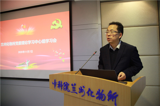 11月7日上午,中国科学院兰州化学物理研究所召开党委理论学习中心组学习(扩大)会,学习贯彻党的十九届五中全会精神,跟进学习习近平总书记近期重要讲话精神。会议由研究所党委书记、所长王齐华主持。所领导班子成员、党委委员参加会议,管理部门正副处长列席会议。