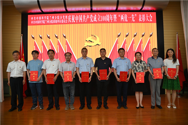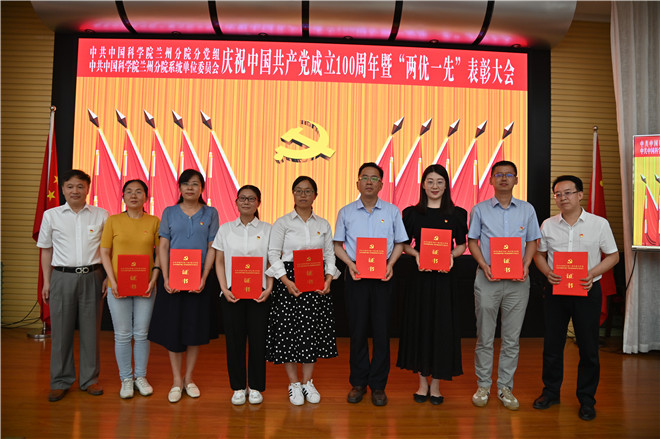 6月28日下午,中国科学院兰州分院分党组、中国科学院兰州分院系统单位党委召开庆祝建党100周年暨“两优一先”表彰大会。会议表彰了兰州分院系统“两优一先”优秀个人和先进集体。中国科学院兰州化学物理研究所王齐华、陈琳、赵华华等同志被授予“优秀党务工作者”称号,邸多隆、郑欣梅、李章朋、岳莹、蒲宝珊等同志被授予“优秀共产党员”称号,固体润滑国家重点实验室第二党支部、环境材料与生态化学研发中心党支部、条件保障处党支部被授予“先进基层党组织”称号。
