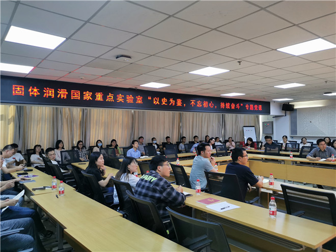 9月17日下午,中国科学院兰州化学物理研究所固体润滑国家重点实验室党总支开展了“以史为鉴,不忘初心,持续奋斗”党史学习教育专题党课活动,邀请兰州大学马克思主义学院思想政治教研室主任张建荣副教授为党总支全体党员讲授专题党课。
