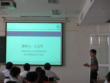 2012年9月26日,课题组王立平研究员再赴江苏大学访问交流,在机械工程学院作了题为《碳基摩擦学涂层结构设计--从基础到高技术应用》的学术报告。机械学院、材料学院、汽车学院等100余名师生参加了此次学术报告会,报告会由符永宏教授主持。报告会上,王立平研究员介绍了中国科学研究院兰州化学物理研究所的发展情况以及其课题组所做的研究工作,并围绕类金刚石碳基薄膜研究与应用中的主要问题,详细讲解了采用基于表/界面的跨尺度和多层次结构设计的实现薄膜材料强韧与润滑一体化涂层材料的特性,展示了其在高技术领域如汽车发动机、高端压缩机以及装备领域的应用和潜力。报告会赢得了与会师生的阵阵掌声。报告会结束后,机械学院表界面科学技术研究所全体成员与王立平研究员进行了学术交流,符永宏教授代表研究所介绍了课题组在表面织构的润滑理论、摩擦学优化设计、激光微造型特种工艺、数值模拟仿真、性能试验、成套设备研制及工程应用等方面的研究工作。双方就各自课题组研究的领域和特点进行了深入的分析与探讨,初步达成了合作研究意向。