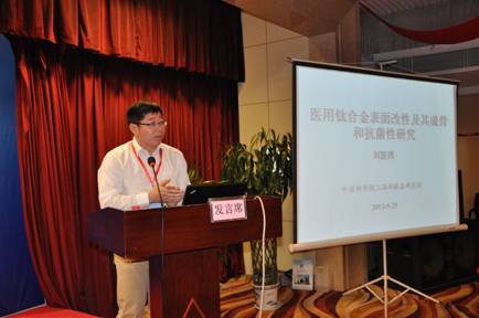 刘宣勇教授作题为“医用钛合金表面改性及其成骨和抗菌性研究”大会报告