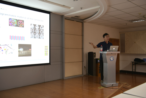 樊春海研究员长期从事生物化学方面的研究,并取得了一系列原创性的研究成果。在一个多小时的报告中,樊春海研究员对DNA纳米结构的发展历程,刚性DNA四面体结构,DNA纳米材料自组装等在核酸、小分子、蛋白、细胞等生物医学领域的应用进行了详细的介绍。此外,樊春海研究员还介绍了刚性DNA四面体进入细胞的作用机理,并对其动力学和热力学过程进行了模拟计算。最后,樊春海研究员与现场师生就DNA四面体的尺寸、产率以及不同形状的DNA进入细胞的效果等问题进行了深入交流讨论。