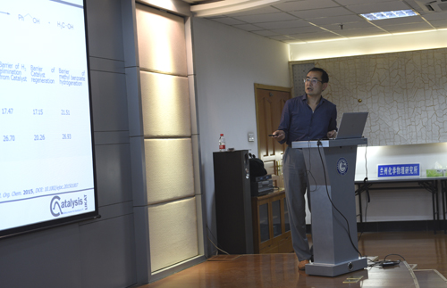 9月7至9日,应中国科学院兰州化学物理研究所绿色化学研究发展中心邀请,中科院山西煤炭化学研究所焦海军研究员到兰州化物所进行学术交流,并作了题为“Computational Understanding of Organometallics and Catalysis Nitrile and Aldehyde Hydrogenation as well Nitrile Coupling Reactions”的学术报告。