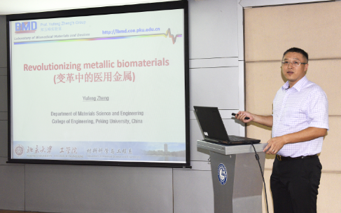 郑玉峰教授首先讲述了生物惰性金属材料(包括不锈钢、钛合金等)在骨科、齿科和心血管等疾病中的应用现状,并分析了其长期存在于体内可能带来的问题。之后,他介绍了生物可降解金属(包括镁、铁、锌合金等)的研究进展以及其课题组在该邻域的研究工作。最后,郑玉峰教授对医用金属材料的发展前景进行了展望和评述。报告结束后,郑玉峰教授与所内的老师和学生就医用金属材料的相关问题进行了交流与讨论。