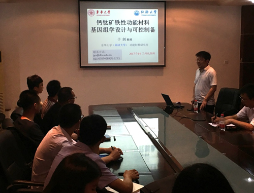 7月14日上午,应中国科学院青年创新促进会兰州化学物理研究所小组邀请,东华大学于剑教授到兰州化物所交流访问,并作了题为“功能材料基因组学设计与可控制备”的报告。