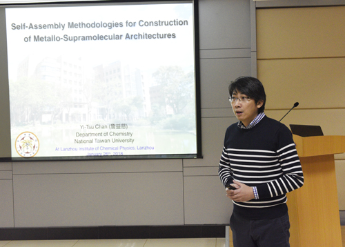 1月26日,台湾大学詹益慈(Yi-Tsu Chan)副教授应邀到中国科学院兰州化学物理研究所进行学术交流,并作了题为“Self-Assembly Methodologies for Construction of Metallo-Supramolecular Architectures”的学术报告。