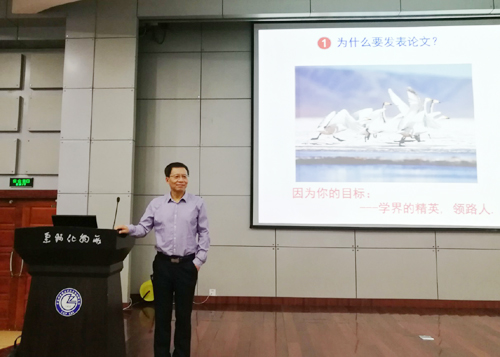 周延春研究员以“为什么要发表论文?” “哪些工作值得发表?” “怎样写好一篇论文?”以及“如何提高论文的影响力?”等几个问题作为切入点谈了自己对科技论文撰写的看法和见解。并结合实例,详细地介绍了论文撰写的步骤、几个重点环节以及引证的规范问题。在提问环节,周延春研究员对同学们提出的“如何写出一篇高质量的论文?”“如何规划自己的科研职业生涯?” “课题研究如何选题?”等问题作了解答,他认为唯有瞄准国家需求,站在学科前沿,才能撰写出有影响力的科技论文。