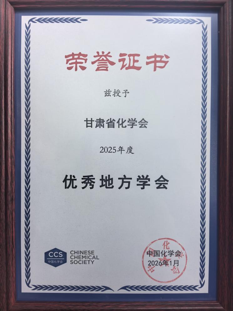 2026年1月16-18日,中国化学会2025年工作会议在广西壮族自治区南宁市召开,会议对年度优秀分支机构、优秀地方学会及优秀学术交流组织进行表彰。甘肃省化学会成功获评 “2025年度优秀地方学会”。此次评选覆盖全国 27 个地方学会,仅7家地方学会获此殊荣。