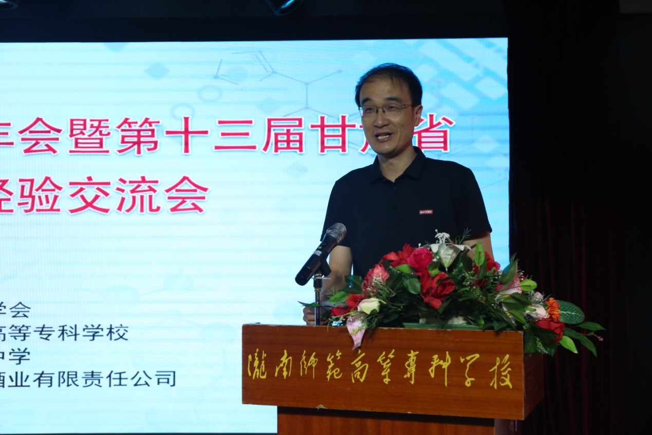 2019年7月17-19日,由甘肃省化学会主办,陇南师范高等专科学校承办的“甘肃省化学会第三十一届年会暨第十三届甘肃省中学化学教学经验交流会”在陇南师范高等专科学校举行。会议主题为 “发扬红色精神,勇担科技强国使命,促进合作交流”。 甘肃省化学会副理事长、中国科学院兰州化物所副所长周峰研究员,甘肃省化学会副会长、西北师范大学化学化工学院院长权正军教授及陇南师范高等专科学校副校长王胜青教授出席会议开幕式及学术交流活动。王胜青副校长和周峰副理事长分别代表陇南师范高等专科学校和甘肃省化学会致辞,甘肃省化学会秘书长、中国科学院兰州化物所王道爱研究员主持了开幕式。来自全省化学化工科教界的百余位代表参加了会议。