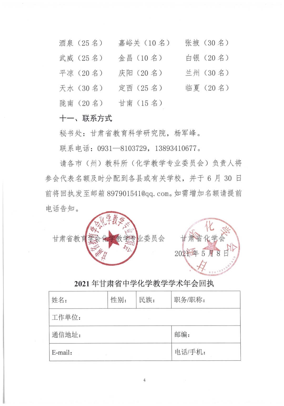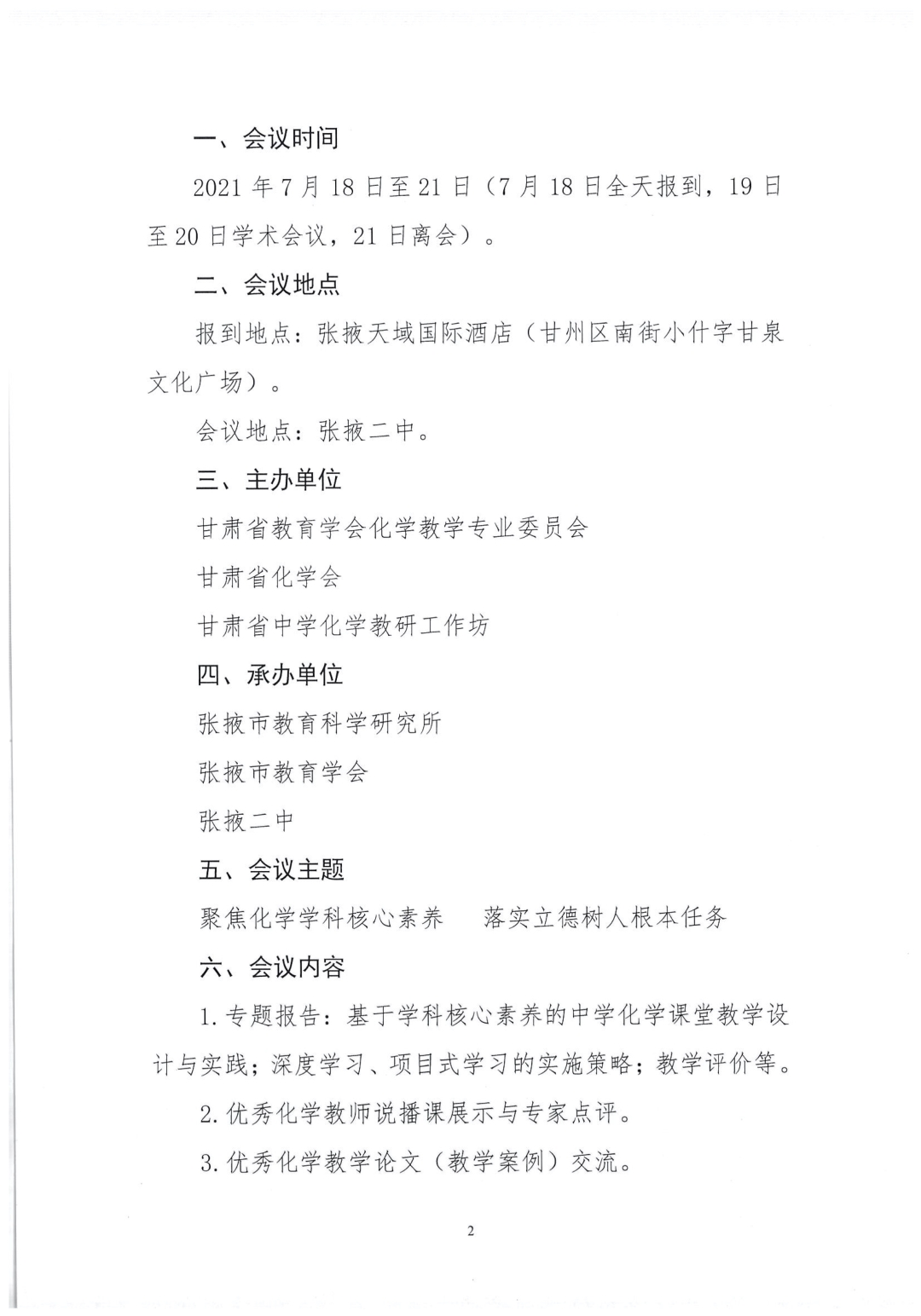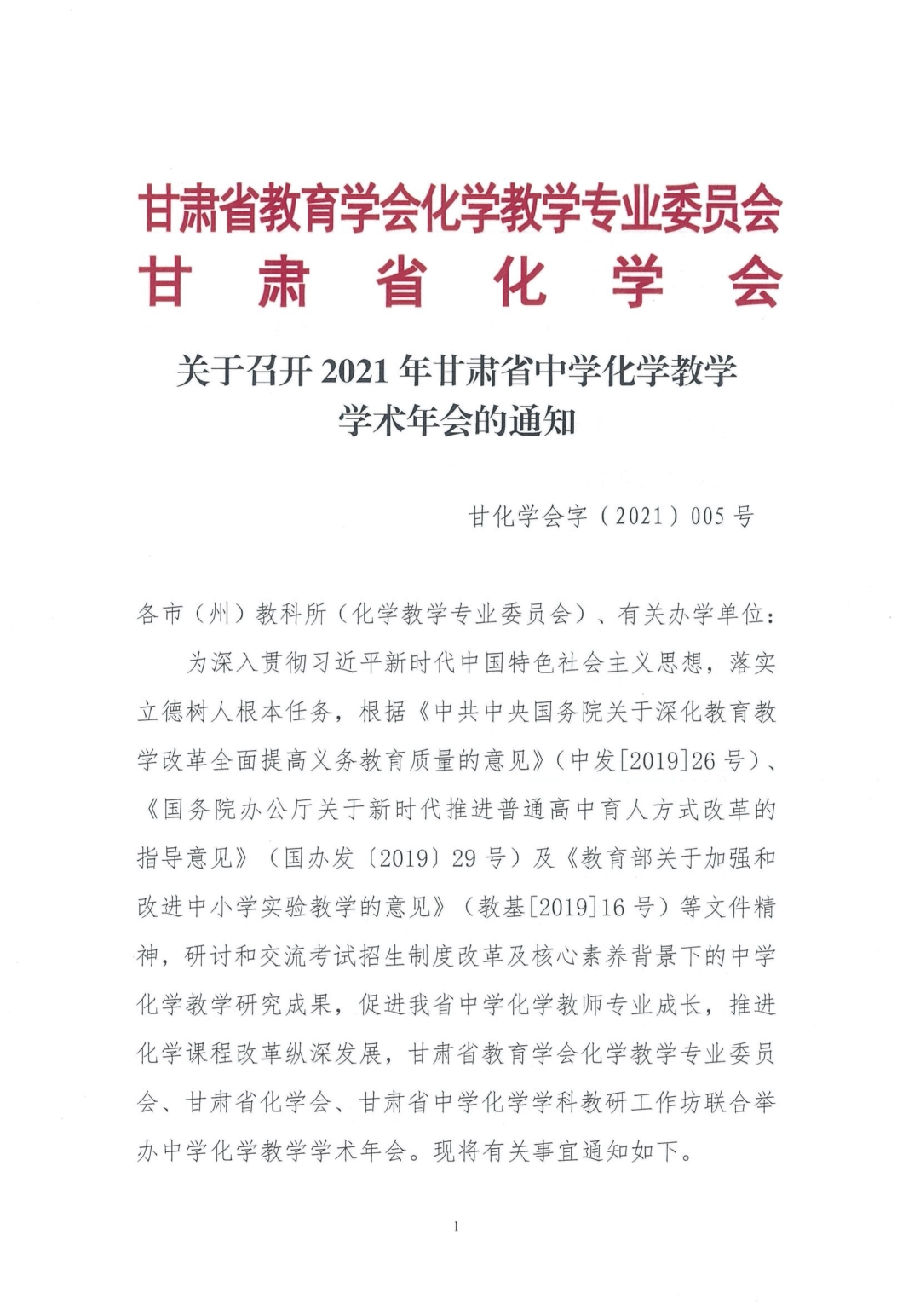 关于召开2021年甘肃省中学化学教学学术年会的通知