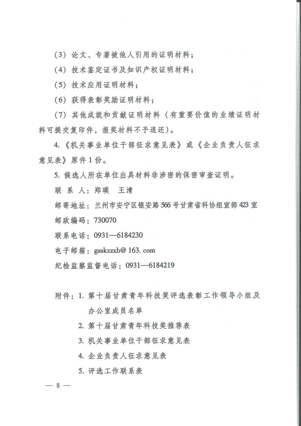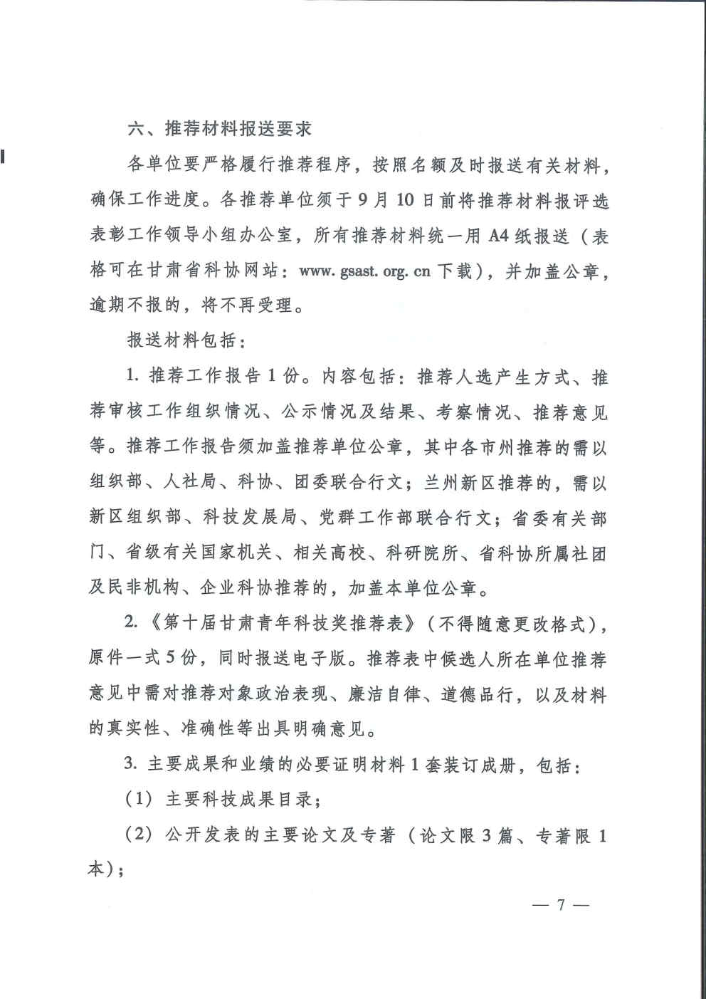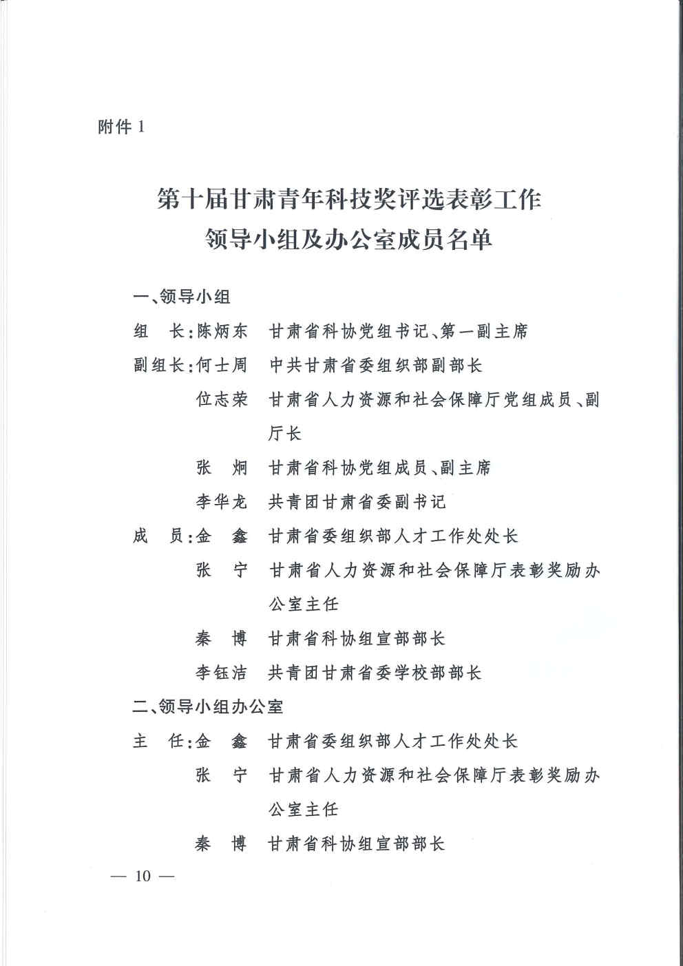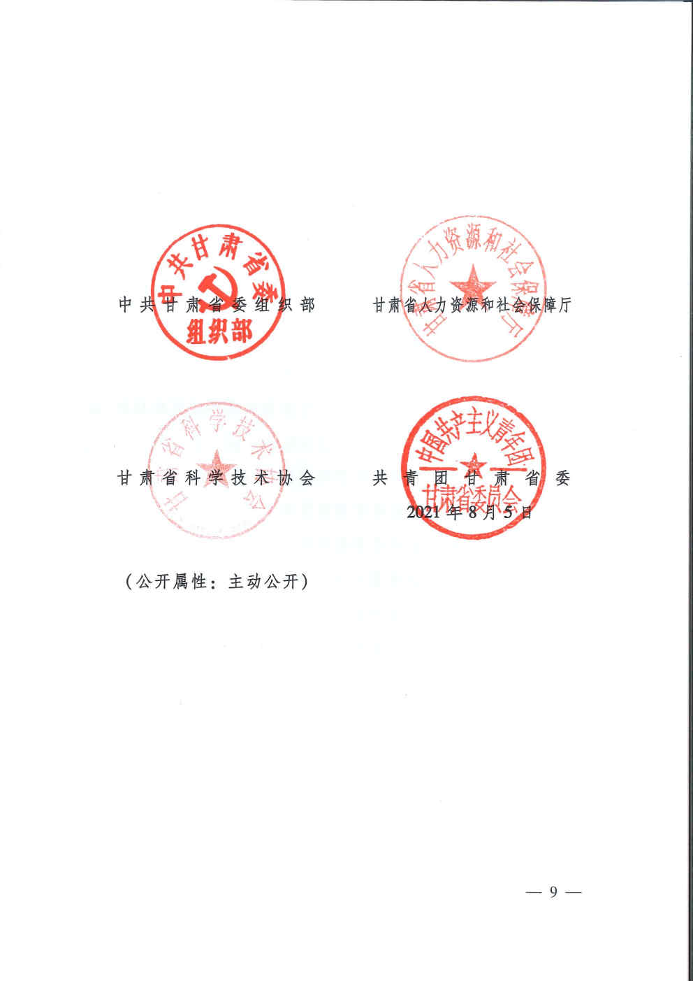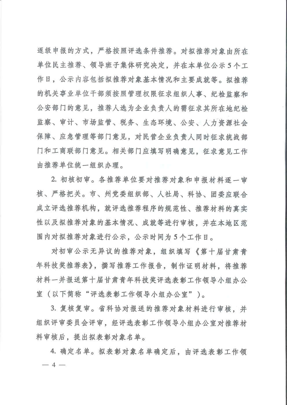 甘人社通【2021】326号 第十届甘肃青年科技奖评选表彰工作的通知